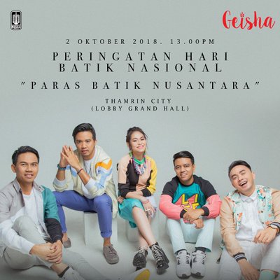 Saksikan penampilan @geishaindonesia & @DMASIV di @thamrincity dalam rangka "Paras Batik Nusantara" Acara akan dimulai pukul 13.00, Selasa 2 Oktober 2018. Yuk dateng yuk! :)